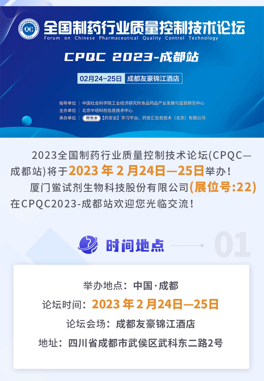 廈門鱟生科展位號22 |2023CPQC成都站全國制藥行業(yè)質(zhì)量控制技術(shù)論壇,期待您的光臨!