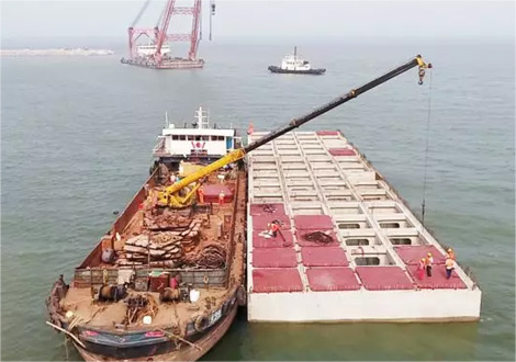 該項目單件沉箱自重500余噸,我司在接到指令之后,即刻安排相關工作人員同步啟動,并對整體項目進行安裝規劃制定,在規定的20天工期之內圓滿完成任務。